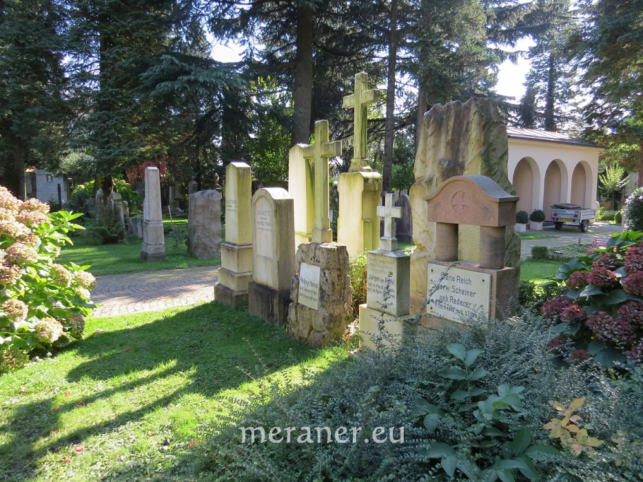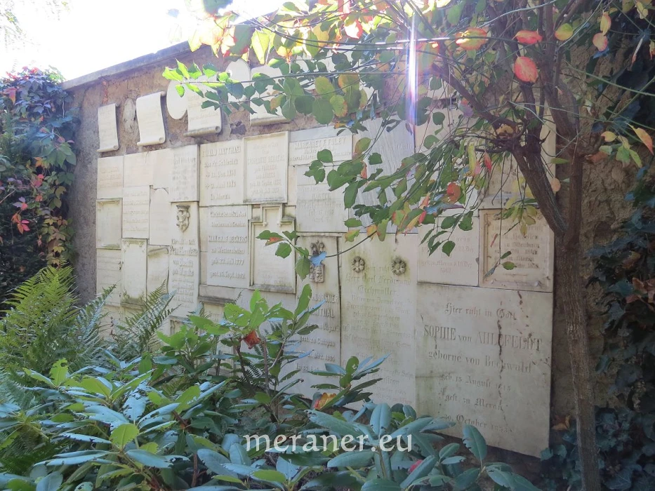 Wie kaum ein anderer Ort verströmt der Evangelische Friedhof am Passerdamm das Flair der vergangenen Größe Merans. Wer da im Schatten ehrwürdiger Bäume zur ewigen Ruhe gebettet wurde, der stellt einen Querschnitt weltläufiger europäischer Geisteskultur dar, die weit über Meran hinausweist und ein bleibendes Denkmal der Toleranz und des Religionsfriedens ist.