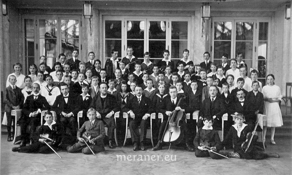 1911 wurden zwei 1. Klassen gebildet mit je 35 bzw. 38 Schülern. Unter ihnen waren die Brüder Paul und Heinrich Luther, Vorfahren der heute gleichnamigen Meraner Gärtnerei. Bereits im Schuljahr 1912/13 besuchten drei Mädchen als Privatistinnen die Schule. Die Öffnung der Schule für Mädchen sollte Ausdruck des fortschrittlichen, modernen Gedankens der Anstalt sein.