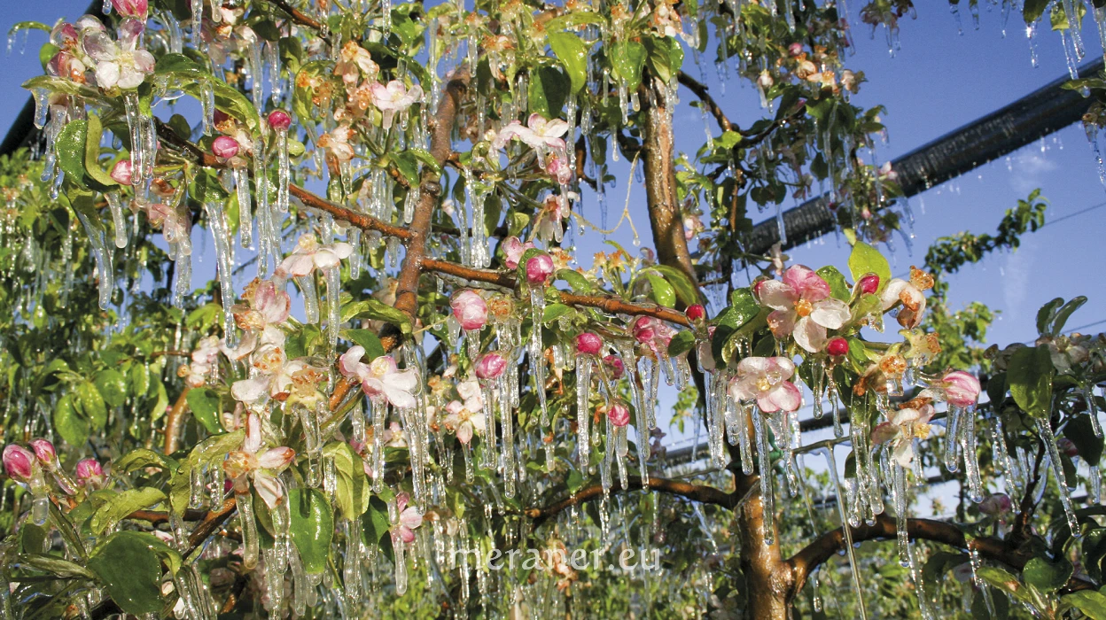 Soll im Herbst eine gute Apfelernte sein, müssen die Landwirte zur Blütezeit besonders aufmerksam sein. Es kann in dieser Zeit häufig zu Spätfrösten kommen, dann drohen Schäden, die den Ertrag und die Obstqualität negativ beeinflussen. Ende April jährte sich der große Frost, der in weiten Teilen Südtirols die Apfelblüte und die Rebenblätter traf sowie den Ertrag der Marillenernte dezimierte.