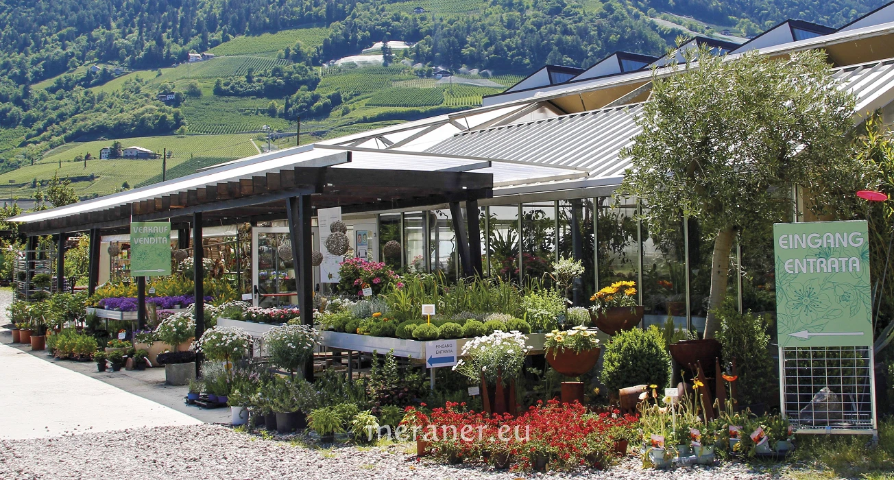 Im Verkauf in der J.-Weingartner-Straße präsentiert der Familienbetrieb eine schier unendliche Vielfalt an allem, was wächst und gedeiht und das Herz eines jeden Blumen- und Gartenliebhabers höher schlagen lässt. Die Kunden finden zu jeder Jahreszeit aktuelle Highlights, eine große Auswahl an Düngern und Erden sowie passende Dekorationsartikel – gepaart mit einer ausgezeichneten fachlichen Beratung. Das Gartencenter ist gut erreichbar, befindet sich direkt an der Hauptstraße von Meran nach Algund und hat einen großen Parkplatz.