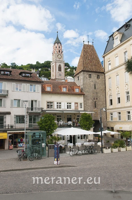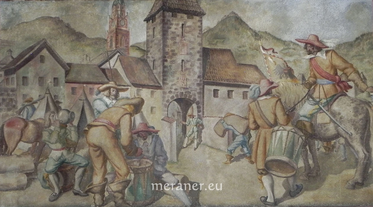 Die Grund- und Kellermauern stammen aus dem 13. Jahrhundert. Das Bozner Tor wurde nach 1300 erbaut. Im Gebäude selbst befinden sich jahrhundertealte Treppen, Balkendecken, Türen und Fenster. Die Vertäfelung der Stube jedoch wurde aus der Nachbargemeinde Tscherms „importiert“. August Sigmund erwarb die Gaststätteneinrichtung beim „Seidl“ und ließ sie in der heutigen Henkersstube einbauen. Während des Umbaus wurden sowohl die Vertäfelung samt Einrichtung als auch die Fresken von Morandel aus den vergangenen 30er-Jahren restauriert bzw. freigelegt und saniert.