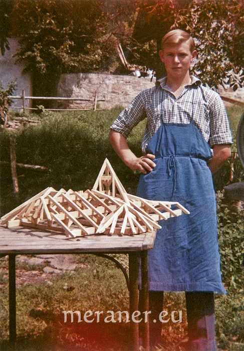 Beim Bau eines neuen Stadels reifte Josefs Wunsch, Zimmermann zu werden. Aber nach dem Schulabschluss musste er noch drei Jahre am Hof bleiben, bis sein jüngerer Bruder kräftig genug war, die schwere Arbeit zu verrichten. In Karl Alber aus Vöran fand Josef einen strengen, aber sehr kompetenten Lehrmeister, der ihm nicht nur professionelles Wissen, sondern auch einiges an Lebensweisheit vermittelte.