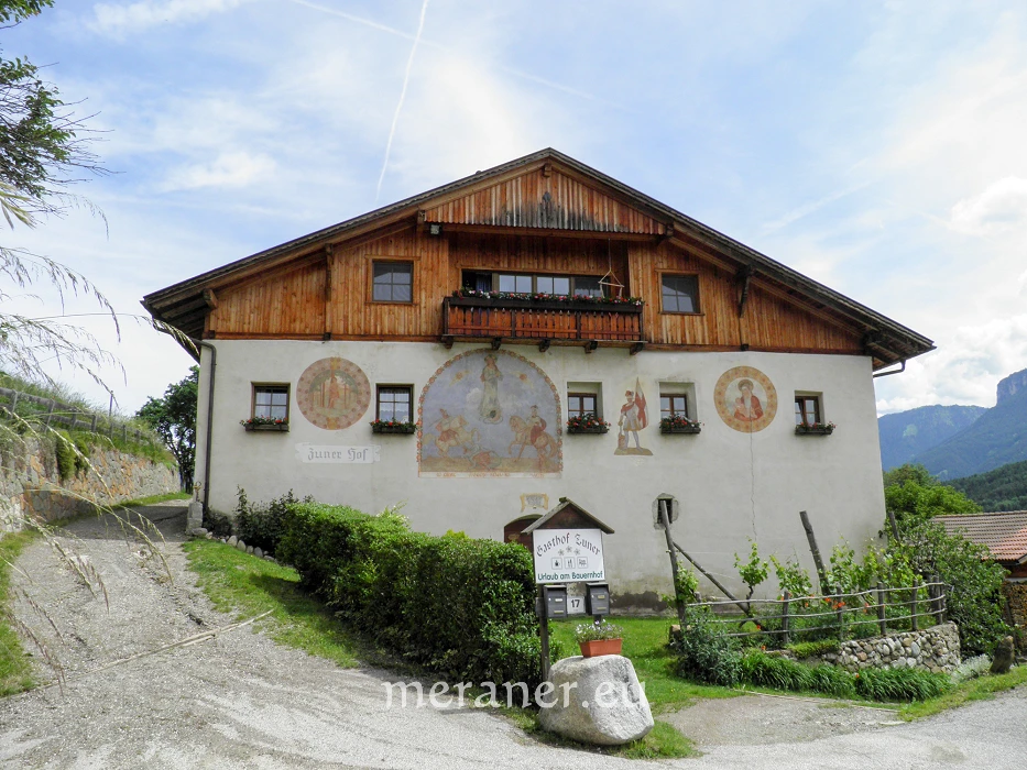 Wegverlauf: Vom Parkplatz in Atzwang (373 m) wechseln wir auf die andere Straßenseite und gehen wenige Schritte nordwärts, bis links (nach der Brücke, Markierung Nr. 9 und Hinweis „Antlas“ und „Lengstein“) der geteerte Weg aufwärtsführt. Vorbei an einigen Häusern erreichen wir den Wald und steigen durch diesen auf dem alten, steilen Wald- und Pflasterweg hinauf bis zum Zunerhof im Weiler Antlas (ca. 800 m, Einkehrmöglichkeit, Montag Ruhetag; ab Atzwang knapp 2 Stunden; kurzer Abstecher zum St.-Andreas-Kirchlein lohnend). Nun folgen wir dem Hinweis „Keschtnweg“ und wandern teils auf breiten Feldwegen, teils auf Höfestraßen nordwärts, vorbei am Schnitzler- und am Braunhof bis zum Penzlhof (850 m). Hier verlassen wir die Straße, wenden uns nach rechts und gelangen, vorbei am aufgelassenen Mesnerhöfl, auf dem Stationenweg hinauf zum Kirchlein St. Verena (896 m, ab Antlas gut 1 Stunde). Vom Kirchhügel steigen wir nordwärts auf einem Waldsteig (in der Nähe ein Schalenstein mit Informationstafel) hinunter zur Straße. Hier folgen wir dem Hinweis „Pirchner Hof“ und der Markierung Nr. 8B und wandern kurz auf der Straße, dann auf breitem Feldweg und steilem Waldweg bergab zu Höfen, dann über Wiesen und zuletzt auf der Straße hinunter bis Kollmann (490 m, Einkehrmöglichkeit; ab St. Verena knapp 1½ Stunden). Mit dem Linienbus kehren wir nach Atzwang zurück.