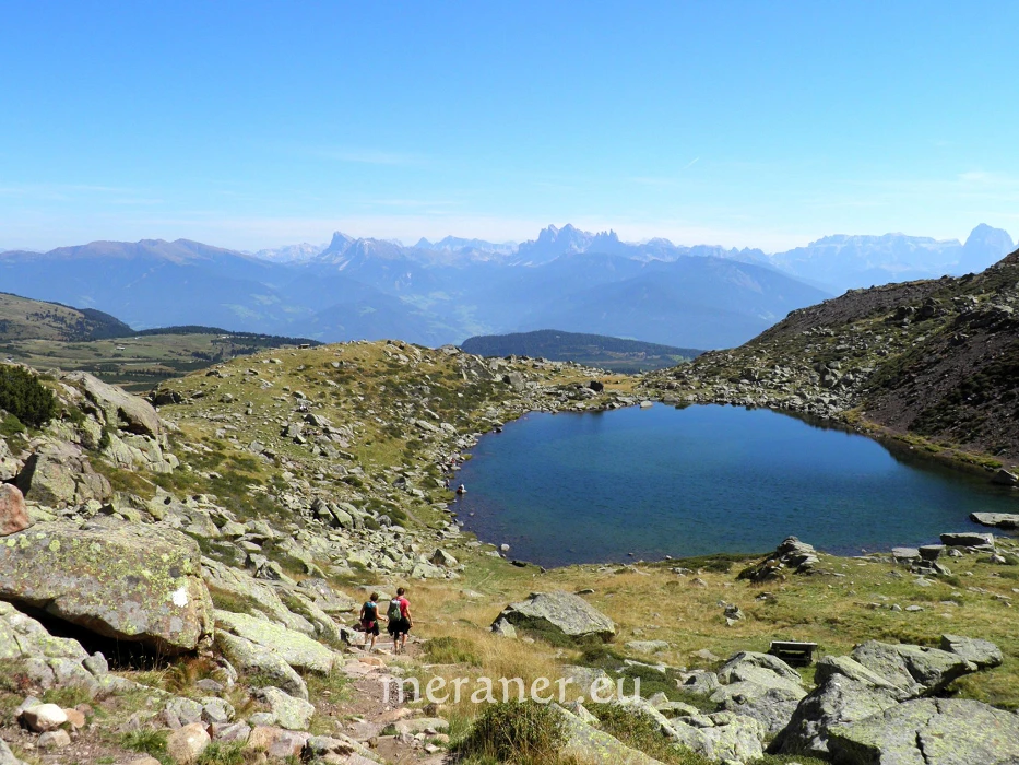 Wegverlauf: Von der Gasserhütte (1.744 m, Einkehrmöglichkeit) wandern wir auf dem breiten Forstweg und streckenweise auf dem „staubfreien“ Wanderweg (Nr. 6) etwas abseits des Forstweges mäßig ansteigend hinauf zur Weggabelung unweit der Almhütte Moar-in-Plun (1.860 m; Einkehrmöglichkeit). Hier folgen wir dem breiten Weg mit Kreuzwegstationen und gelangen zur Jausenstation Pfoderalm (2.130 m, Einkehrmöglichkeit) und kurz auf schmalem Fußweg etwas steiler hinauf zum Totenkirchl (2.186 m; ab Gasserhütte 2 Stunden). Auf dem links abzweigenden Steig erreichen wir in 10 Minuten nahezu eben den Totensee (2.208 m). Nun wandern wir rechts der Markierung folgend am felsdurchsetzten Grashang steil hinauf zum Bergrücken, wenden uns nach rechts und erreichen leicht ansteigend zuerst einen Vorgipfel (Zwölfernock, 2.434 m) und nach kurzem Ab- und Anstieg den Hauptgipfel des Villanderer Berges (2.509 m, ab Totensee gut 1 Stunde).