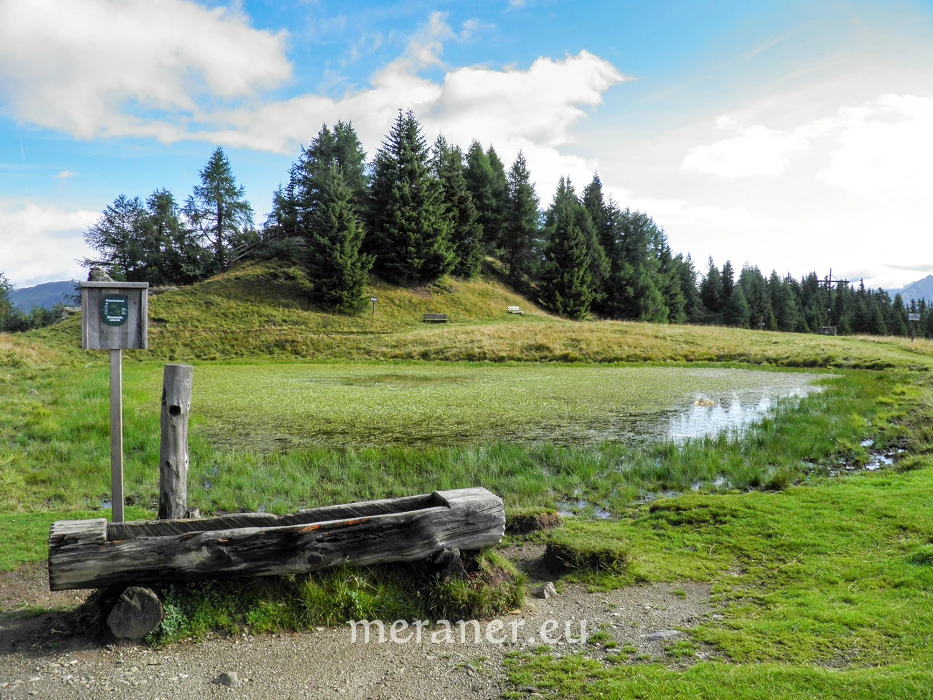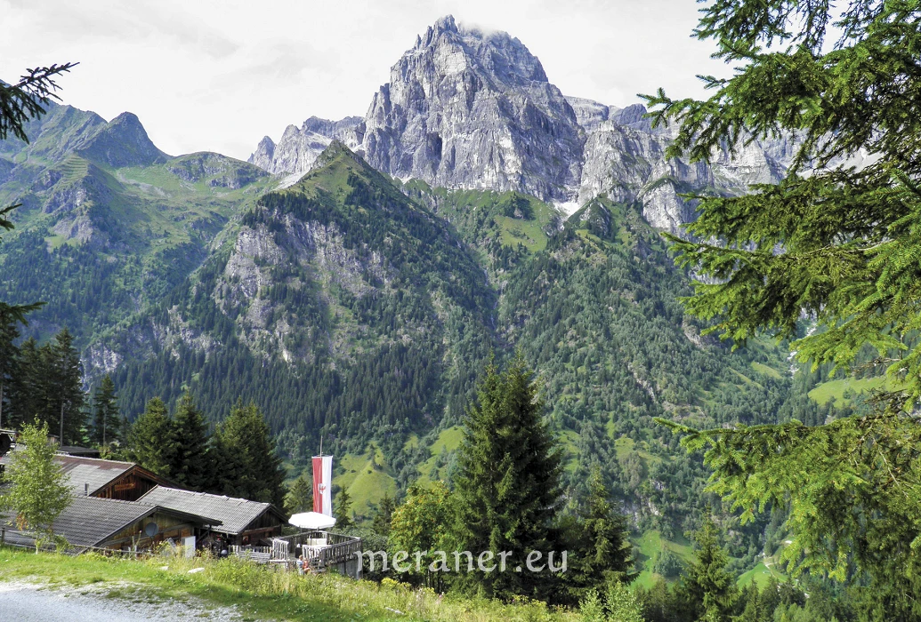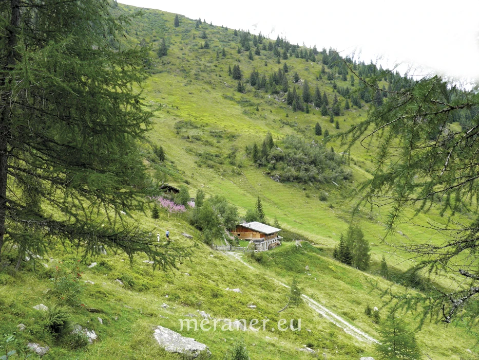 Hinweis: Man kann die Wanderung um rund die Hälfte abkürzen, wenn man von der Ladurnerhütte absteigt (Weg Nr. 34) bzw. mit der Bahn (Achtung: verkehrt nur im Hochsommer täglich, danach bis 16.09. nur am Mittwoch und von Freitag bis Sonntag; es gibt aber einen Shuttledienst – bei der Ladurnerhütte nachfragen) ins Tal fährt oder mit dieser Bahn zur Hütte auffährt und dann entweder talein- oder talauswärts wandert.