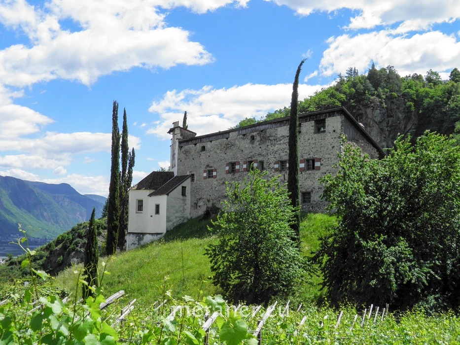 Wegverlauf: Vom Kreisverkehr in der Nähe des Busbahnhofs in Oberlana gehen wir auf der Straße Richtung Seilbahn Vigiljoch und folgen kurz davor rechts dem Villner Weg und später der Raffeingasse, bis links der Aichbergweg abzweigt. Auf diesem wandern wir nun stets leicht ansteigend am Rande von Obstwiesen und Weinbergen und später durch Wald südwärts (Bei mehreren Weggabelungen auf die Kennzeichnung an kleinen Holzpfählen achten!). Am höchsten Punkt (ca. 650 m) treffen wir auf mehrere Kastanienbäume; hier beginnt der Abstieg. Zuerst folgen wir der Asphaltstraße, bis nach einer Rechtskurve links der Fußweg (Nr. 34) abzweigt. Auf diesem erreichen wir den Zollweghof (auf Vormerkung Verkostung eigener Weine und biologischer Produkte, Tel. 334 929 8716) und dann die Kapelle zum hl. Magnus in Gagers. Bald überqueren wir die Straße, die ins Ultental führt, gelangen in die Nähe von Schloss Braunsberg und wandern auf einem alten Steinplattenweg weiter bergab. Auf dem Braunsbergweg gelangen wir in der Nähe der Theisbrücke nach Lana zurück.