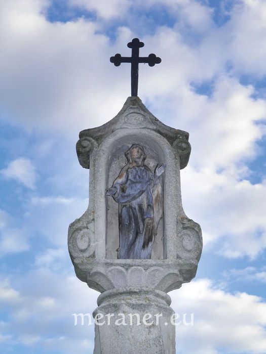 Am Weg von Steinegg zu den Erdpyramiden kommen wir an dem 1797 erbauten Maria-Hilf-Kirchlein vorbei. In unmittelbarer Nähe steht das „Weiße Bild“, ein schöner Bildstock aus weißem Marmor (daher der Name). Er besteht aus mehreren Werkstücken, von denen eines die Jahreszahl 1523 trägt, ein anderes hingegen die Zahl 1746. Dehalb und wegen der besonderen Form gehört er zu den ungewöhnlichsten Bildstöcken unseres Landes.