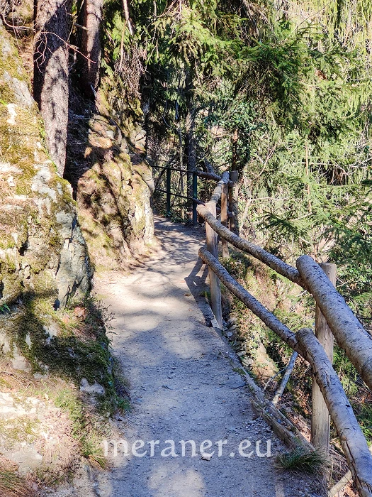 Anfahrt: Von Meran Richtung Jaufenpass bis Riffian und dort bis zum ersten Parkplatz bald nach dem Dorfeingang, links etwas oberhalb der Straße; oder mit dem Bus nach Riffian.