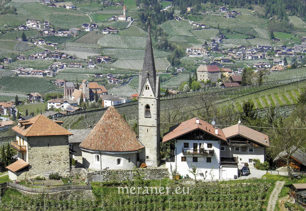 Besonderheiten: Der Ortskern von Schenna ist von historischen Bauwerken geprägt: dem filigranen Mausoleum Erherzog Johanns, der wuchtigen Pfarrkirche und dem gut erhaltenen, mächtigen Schloss Schenna.