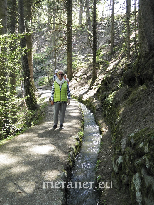 Ein Teil der Wanderung folgt dem Begleitweg des Schenner Waales. Während es im Gebiet rund um Schenna bereits im Mittelalter verschiedene Waale gab, wurde der Schenner Waal erst 1733 erbaut, weshalb er auch die Bezeichnung „Neuwaal“ erhielt. Von seiner Fassung im Masultal bis zur Mündung in den Naifbach ist er fast acht Kilometer lang, wobei der südliche Teil ziemlich naturbelassen ist.