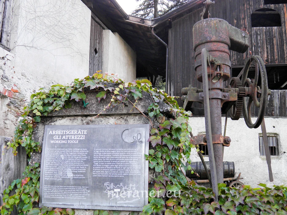 Wegverlauf: Vom Dorfplatz in Marling (365 m) gehen wir über die Franz-Innerhofer-Straße nordwärts bis zum Oberwirt, wenden uns dort nach links und erreichen auf der Anselm-Pattis-Straße den Alten Pfarrwidum und die Privatbrennerei Unterthurner. Am Cafè Restaurant Gerta wenden wir uns rechts in die Mitterterzer Straße. Auf dieser kommen wir vorbei an den Weingütern Popphof und Pardellerhof sowie an einem neuen Bildstock. Oberhalb der Schickenburg gehen wir weiter bis zum Urhof Siniger, bei dem links der Bruggerweg abzweigt. Diesem