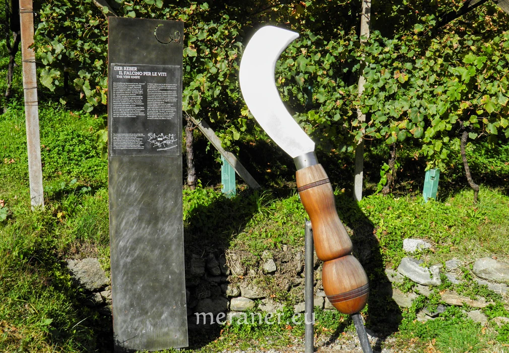 Besonderheiten: Der vor gut einem Jahr errichtete Weinkulturweg führt entlang wenig befahrener Dorfstraßen und vorbei an zahlreichen Weinhöfen und an der Kellereigenossenschaft Meran Burggräfler in einem weiten Bogen wieder ins Dorf zurück. Entlang des Weges gibt es 18 Stelen mit von Sebastian Marseiler verfassten Texten, die Aufschluss geben über die Weingeschichte und die Weinkultur. Die Form der Weinstelen ist einer Fassdaube entnommen, die seitliche, rote Farbe symbolisiert die Bemalung des Fasses und die Patina des Eisens ist jener einer reifen Traube nachempfunden. Überlebensgroße Gegenstände aus dem Weinbau säumen den Weg: ein Reber, ein Moster und am Dorfplatz die Pazeide, ein uraltes Wein- und Messgefäß.