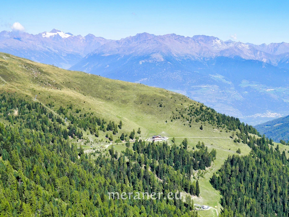 Wenn wir zu Fuß absteigen, folgen wir von der Hütte dem breiten Weg, biegen bei den Sendemasten rechts ab und erreichen auf dem Waldweg Nr. 17 die Talstation des Sessellifts und den Parkplatz bzw. die Bushaltestelle (1.570 m, ab Furkelhütte 90 Minuten).