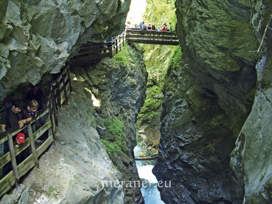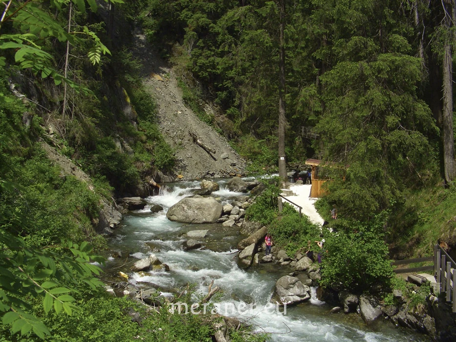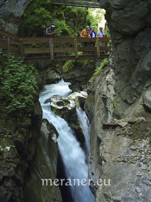 Eine erste Weganlage durch die Schlucht wurde bereits 1896 eröffnet und die Schlucht erhielt den Namen „Kaiser-Franz-Josef-Klamm“. Der Weg hangelt sich zwischen den Felsen entlang und man genießt tolle Blicke in die tiefen Schluchten, in denen das Wasser rauscht. Der Ratschingser Bach verwandelt sich hier in tosende Wassermassen, die sich durch die felsige Schlucht ihren Weg bahnen. Unser Blick fällt auch in eine unheimliche, tiefe Schlucht, in der ein 15 m hoher Wasserfall zwischen glattgescheuerten Marmorfelsen in die Tiefe donnert.