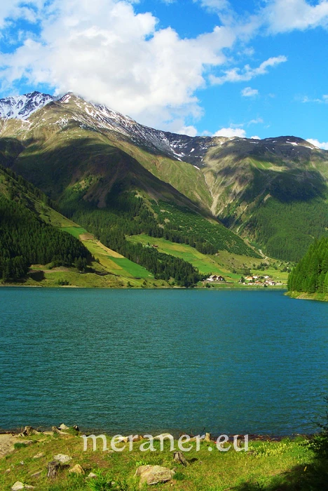 Wegverlauf: Vom Parkplatz (1710 m) folgen wir dem Wegweiser „Tisenhof“ und der Nr. 7 und erreichen über die leicht ansteigende Zufahrtsstraße den Tisenhof (1.814 m, Einkehrmöglichkeit) und nach der Überquerung des Baches den Raffeinhof (1886 m, Einkehrmöglichkeit). Von dort wandern wir auf dem stellenweise schmalen und etwas ausgesetzten, mit Nr. 7 markierten Steig in weitgehend ebener Querung der Gras- und Lärchenhänge hinein zum Gehöft Finail (1953 m, Einkehrmöglichkeit; ab Ausgangspunkt gut 1 Stunde). Nun gehen wir auf der asphaltierten Zufahrt kurz abwärts bis zur ersten Kehre. Hier zweigt unser Weg mit dem Hinweis „Marcheggtal“ und der Markierung 8 rechts ab. Wir queren die Waldhänge leicht abwärts und erreichen die Schnalser Talstraße. Nach wenigen Metern taleinwärts zweigt links der Weg mit der Bezeichnung „Seerundgang“ ab und führt hinunter zur Wegteilung (ab Finailhof 45 Minuten). Hier können wir wählen, ob wir den Weg auf der Nord- oder Südseite des Sees nehmen. Für den Weg entlang der Südseite des Sees steigen wir scharf rechts über eine Holztreppe hinauf, steigen etwas ab und queren auf einer Hängebrücke die tiefe Schlucht des Talbaches. Dann wandern wir, die Hänge am südlichen Seeufer querend, ostwärts hinaus zum Staudamm und über die Dammkrone zurück zum Parkplatz (ab Wegteilung 1 Stunde).