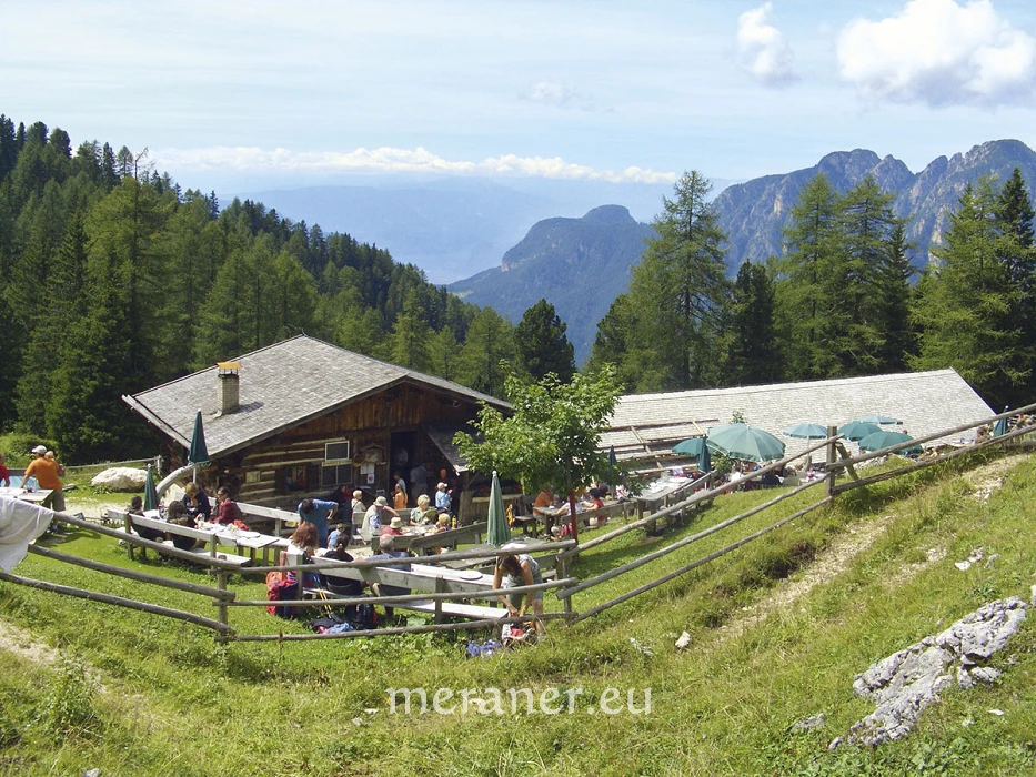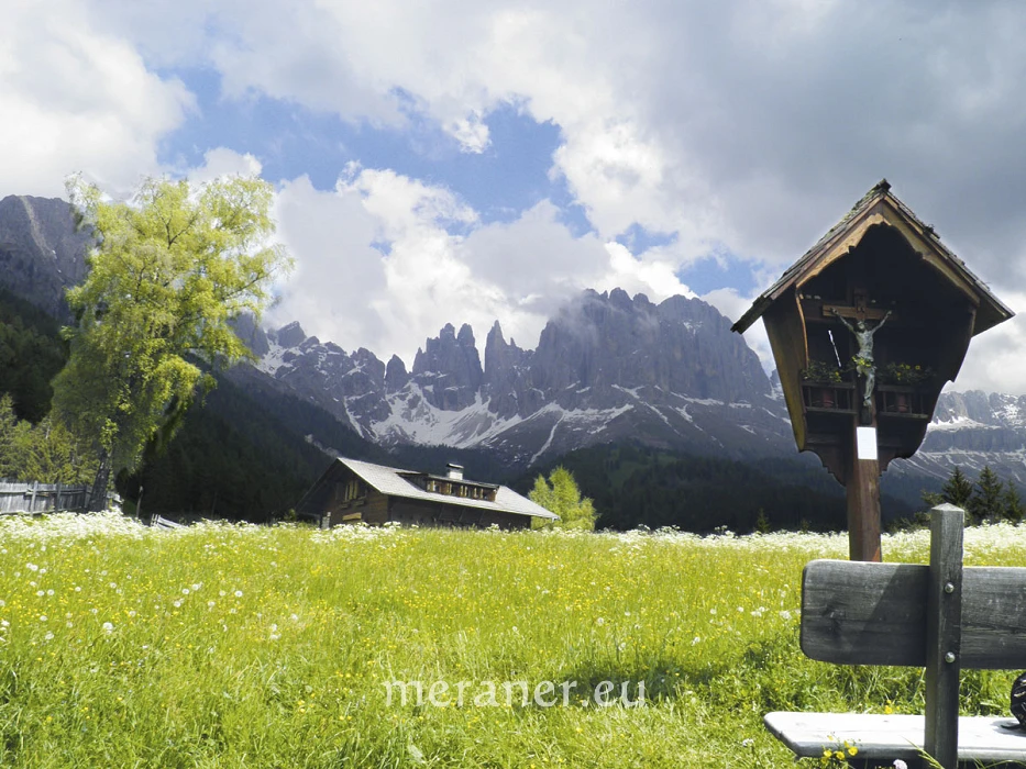 Besonderheiten: Die Wanderung führt uns entlang der Hänge am Fuße des Rosengartens. Der Steig bietet immer wieder herrliche Blicke auf die das Tal abschließenden Bergkämme, das Schlern-Hochplateau, den Tschafon, hinunter in den Bozner Talkessel und weit darüber hinaus. Bei der Haniger Schwaige sind die Felsen der Vajolettürme zum Greifen nahe und beeindrucken uns durch ihre zerklüfteten, bizarren Formen. Der Kaiserschmarrn hat die Küche dieser Schwaige berühmt gemacht. Von Plafötsch genießen wir den überwältigenden Blick auf den Rosengarten mit seinen bizarren Felszacken, auf die Vajoletttürme und die Laurinswand und in der Ferne ist der Latemar erkennbar