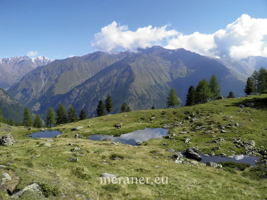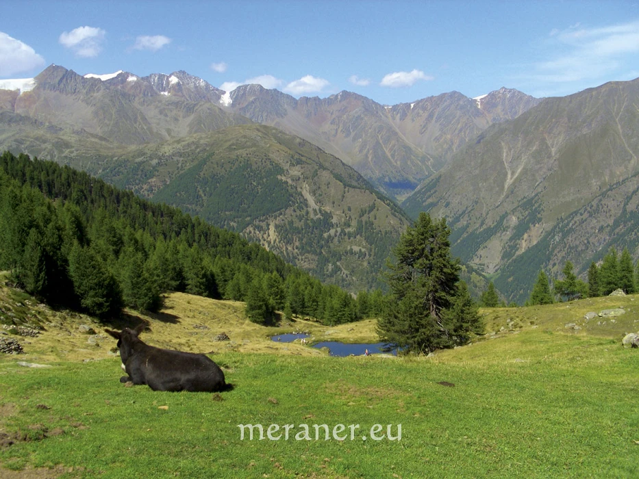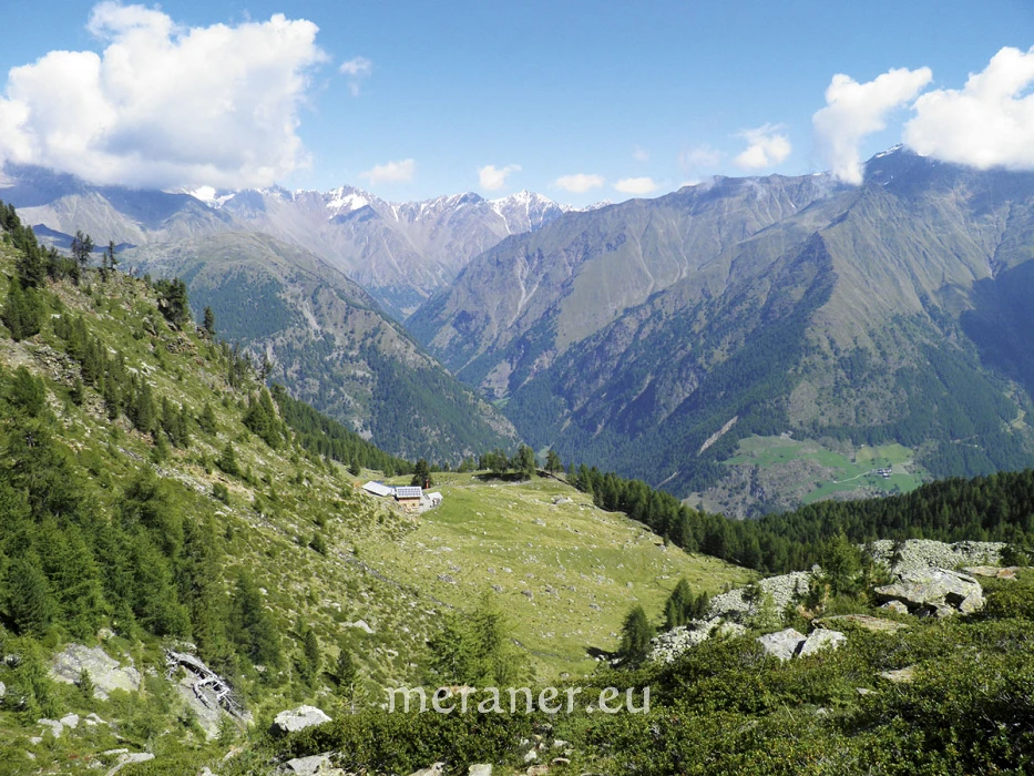 Anfahrt: Von Naturns ins Schnalstal bis Karthaus (1327 m), dort vor dem großen Parkplatz nach dem Bildstock rechts auf der asphaltierten Höfezufahrt und später auf Forstweg steil hinauf zu einem kleinen Parkplatz im Wald, kurz vor der Schranke; hier Parkmöglichkeit.