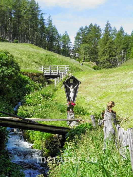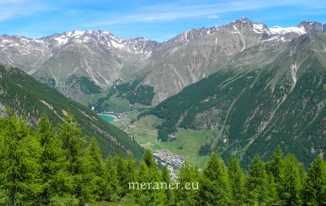 Anfahrt: Von Naturns ins Schnalstal bis Unser Frau (1.500 m) und auf der Talstraße bis zur Abzweigung mit dem Hinweis „Archeopark“, nach wenigen Metern rechts Parkplätze; mit dem Bus von Naturns ins Schnalstal bis Unser Frau, 2. Haltestelle am oberen Dorfrand.