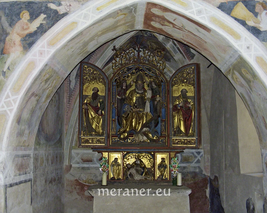 In Bad Dreikirchen herrscht die Stille einer unversehrten Mittelgebirgslandschaft von außerordentlichem Liebreiz. Die drei eng aneinander geschmiegten kleinen Kirchen sind nicht nur lagemäßig, sondern auch in kunst- und kulturgeschichtlicher Hinsicht ein Juwel unseres Landes. Sie bestechen außen durch ihre malerische Architektur und ein mächtiges Christophorusfresko aus dem 15. Jahrhundert. Im Innern der Magdalena- und der Gertraudskirche können wir je einen gotischen Flügelaltar und gotische Fresken bewundern. Die Grundmauern des heutigen Badgasthauses entstanden im Jahr 1315. Um das Jahr 1855 wurden hier mehr als 400 Badegäste gezählt. Der Dichter Christian Morgenstern weilte 1908 in Dreikirchen und lernte dort seine Frau kennen. Unser Blick reicht weit ins mittlere Etschtal und in die Dolomiten. Man soll von Dreikirchen einundvierzig Kirchtürme sehen.