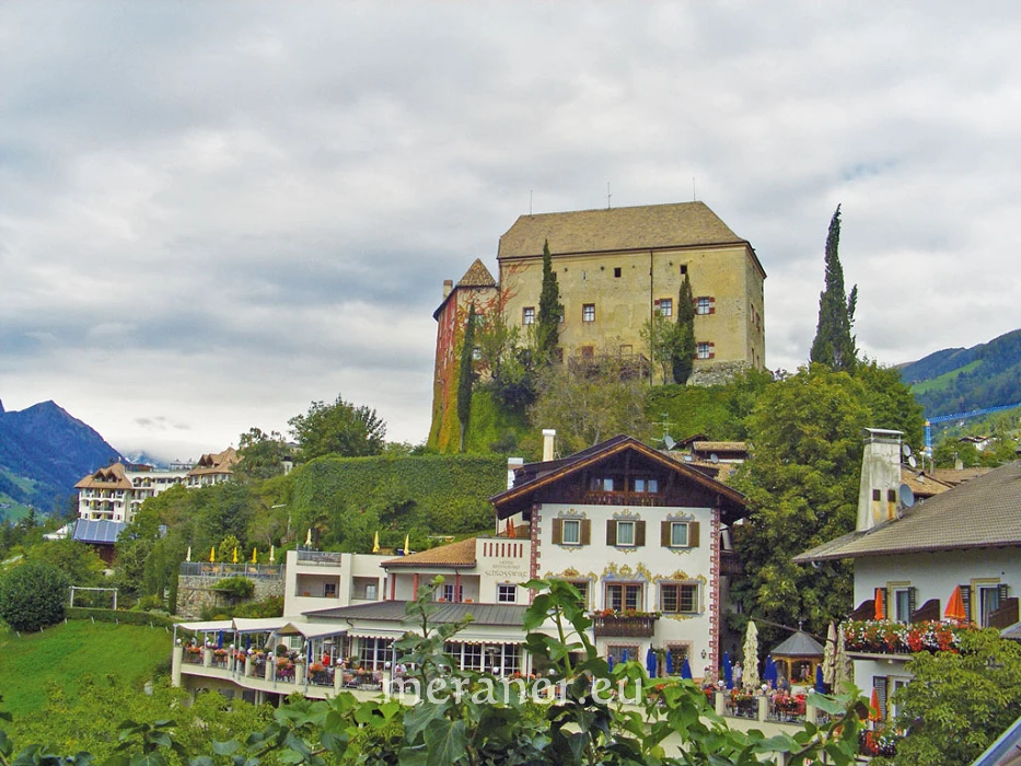 Von der Bushaltestelle (640 m) folgen wir einem schmalen Weg, der entlang der Haflinger Straße kurz aufwärtsführt, bevor wir die Straße überqueren und auf der Asphaltstraße – Hinweis „Schenner Waalweg“ – zu einem Hof in der Nähe von Schloss Vernaun gelangen. Dann wandern wir durch Obstwiesen, immer dem Waal folgend, oberhalb von St. Georgen vorbei bis zum Gasthof Pichler (822 m, Einkehrmöglichkeit - geöffnet bis 07.11. - ab Naif ca. 1 Stunde 30 Minuten). Nun folgen wir der Straße bergab, bis rechts der Weg Nr. 12 mit dem Hinweis „Schenna“ abzweigt. Auf diesem wandern wir am alten Gasthof „Moar - eben“ vorbei hinab, wenden uns an der Weggabelung nach links und erreichen auf dem Weg Nr. 20 den Ortskern von Schenna (600 m; ab Pichler 30 Minuten). Wir folgen der Hauptstraße, vorbei am Hotel „Schennerhof“, biegen rechts ab in den Fußweg Nr. 10 und später 10 A mit dem Hinweis „Meran“. Mitten in den Obstwiesen folgen wir dem Hinweis „Stickle Gasse“ nach rechts und gelangen in die Pflanzensteinstraße. Von dieser biegen wir rechts ab in die Plantastraße und später links in die Vergilstraße. Auf dem Lazagsteig, der rechts abzweigt, gelangen wir zur Passer und zur Sommerpromenade (320 m; ab Schenna 1 Stunde).