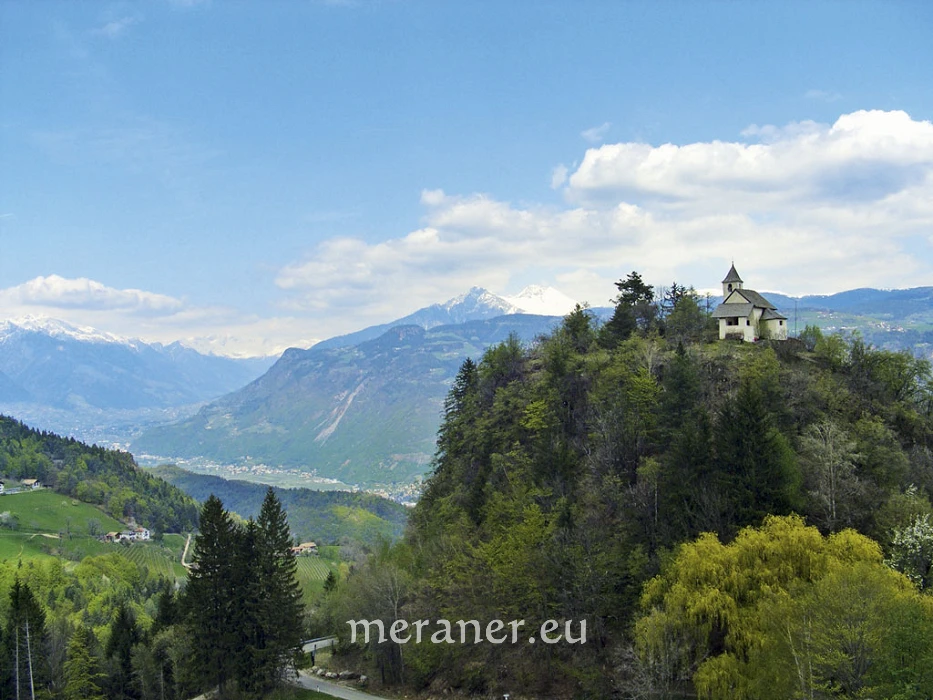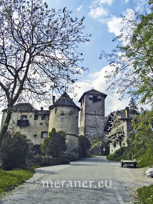 Vom Tourismusbüro in Nals (320 m) biegen wir in die Goldgasse ein und wandern auf dem Nachtigallenweg, der links neben der Bäckerei beginnt, bergauf. Etwas höher gelangen wir zum Wanderweg Nr. 9, der mehrmals die Straße quert. Auf dieser kommen wir am Schloss Payersberg vorbei und erreichen Untersirmian (680 m). An der Kirche vorbei führt unser Weg Nr. 9 durch Wiesen und Wald nach Obersirmian (Einkehrmöglichkeiten). Vom Gasthof Apollonia führt ein schmaler Steig kurz hinauf zum Kirchlein St. Apollonia (900 m; ab Nals gut 2 Stunden). Nun folgen wir dem Weg Nr. 8, der kurz steil ansteigt und dann nahezu eben, den Nalser Bach querend, zur Hügelkirche St. Jakob (922 m) und nach Grissian (839 m, zwei Gasthöfe; ab St. Apollonia 1 Stunde) führt. Vorbei am Grissianer Hof wandern wir auf dem Waldweg (Markierung W) hinunter zum Ortsrand von Prissian. Dort folgen wir dem Forstweg kurz nach links und der Markierung 12 und 8 und erreichen die Hauptstraße. Auf dieser gehen wir nach rechts und biegen dann links ab zum Schloss Katzenzungen (ab Grissian 1 Stunde). Nun steigen wir auf Weg Nr. 17 kurz ab und wieder auf, wenden uns nach rechts und erreichen den Fahrweg Nr. 2. Diesem folgen wir nach rechts, verlassen bald die Asphaltstraße und steigen auf schmalen Pfad zur Ruine Pfeffersburg und zum Gasthof Unterkasatsch ab und weiter hinunter nach Nals (ab Schloss Katzenzungen 1 Stunde).