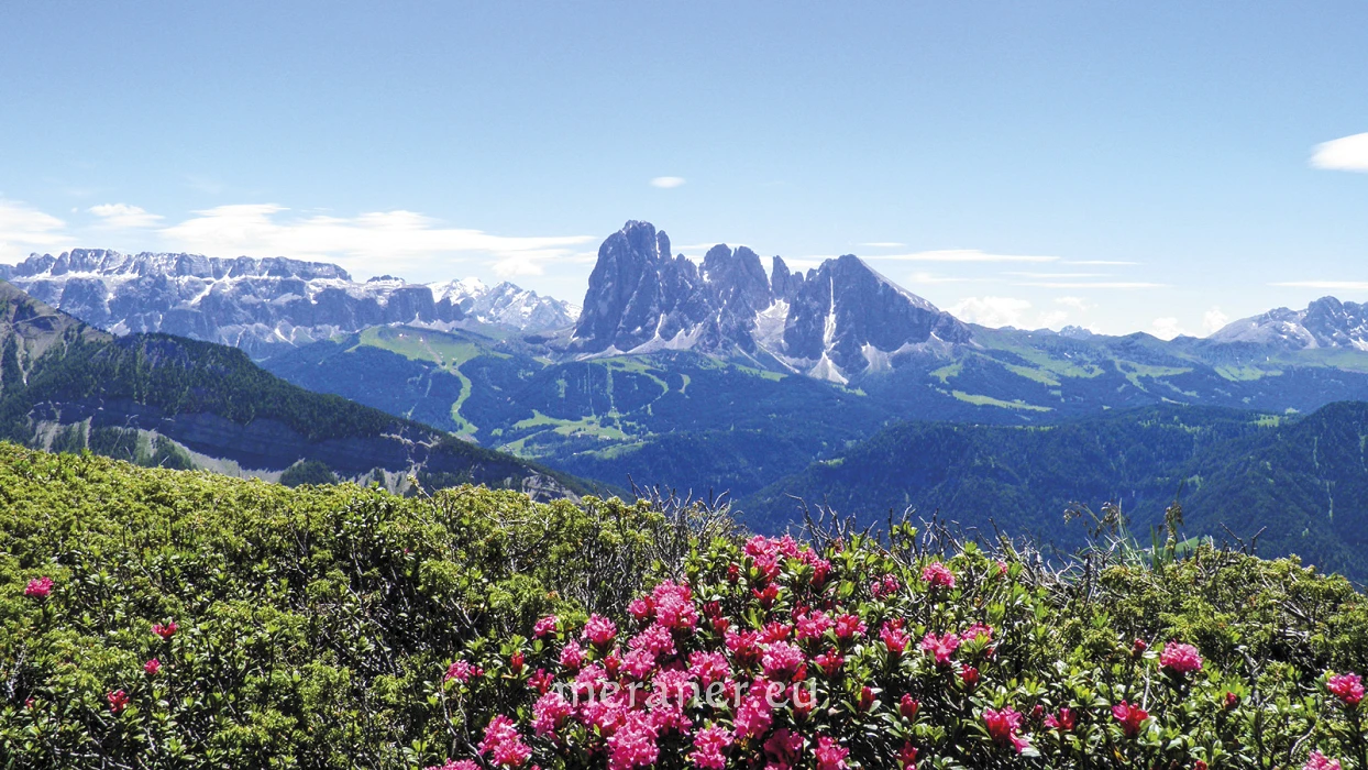 Besonderheiten: Die Raschötz ist ein bewaldeter Höhenzug zwischen Gröden und Villnöß. Auf seinem breiten Kamm, der über die Baumgrenze hinausragt, breiten sich weite Almen aus. Die Aussicht zählt zu den schönsten, die der Alpenraum zu bieten hat. Die Bahn wurde 2010 als Schrägaufzug neu gebaut und bereits die Fahrt mit den modernen Waggons ist ein Augenschmaus der besonderen Art. Das Panorama bleibt uns auf der ganzen Wanderung erhalten. Wie auf einem Präsentierteller liegen alle weltbekannten Dolomitengipfel vor uns: der Sellastock, Lang- und Plattkofel, die vergletscherte Marmolata, der Schlern, die Geislergruppe. Vom Gipfel der Raschötz geht der Blick im Norden zum Brixner Talkessel und zu den Zillertaler und Ötztaler Alpen und im Westen in das Eisacktal und bei guter Fernsicht bis zur Ortlergruppe. Die Gipfelkuppe ziert ein beeindruckendes, hölzernes Kruzifix, ein Werk der Grödner Holzschnitzkunst. Etwas unterhalb des Gipfels liegt die schindelgedeckte Hl.-Kreuz-Kapelle, die von frommen Bauern in der Mitte des 18. Jahrhunderts errichtet wurde.