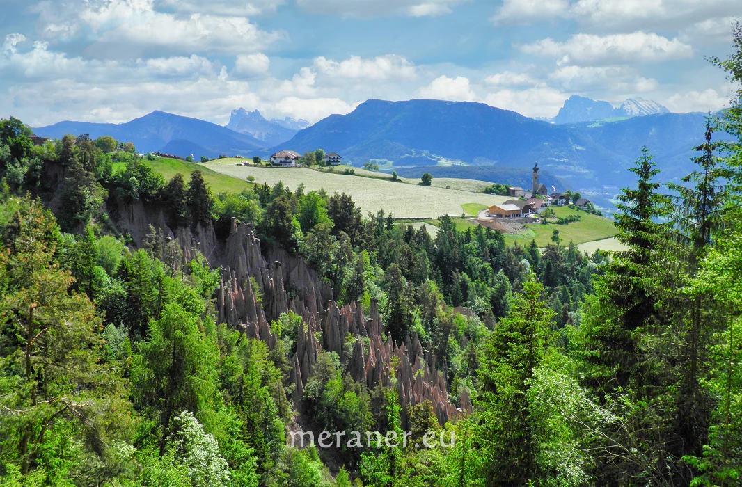 Besonderheiten: Von unserem Wanderweg können wir besondere Blicke auf die Erdpyramiden und die malerische Hintergrundkulisse genießen. Die Gipfel der westlichen Dolomiten, besonders der Schlern, zeigen sich uns in ihrer ganzen Pracht.