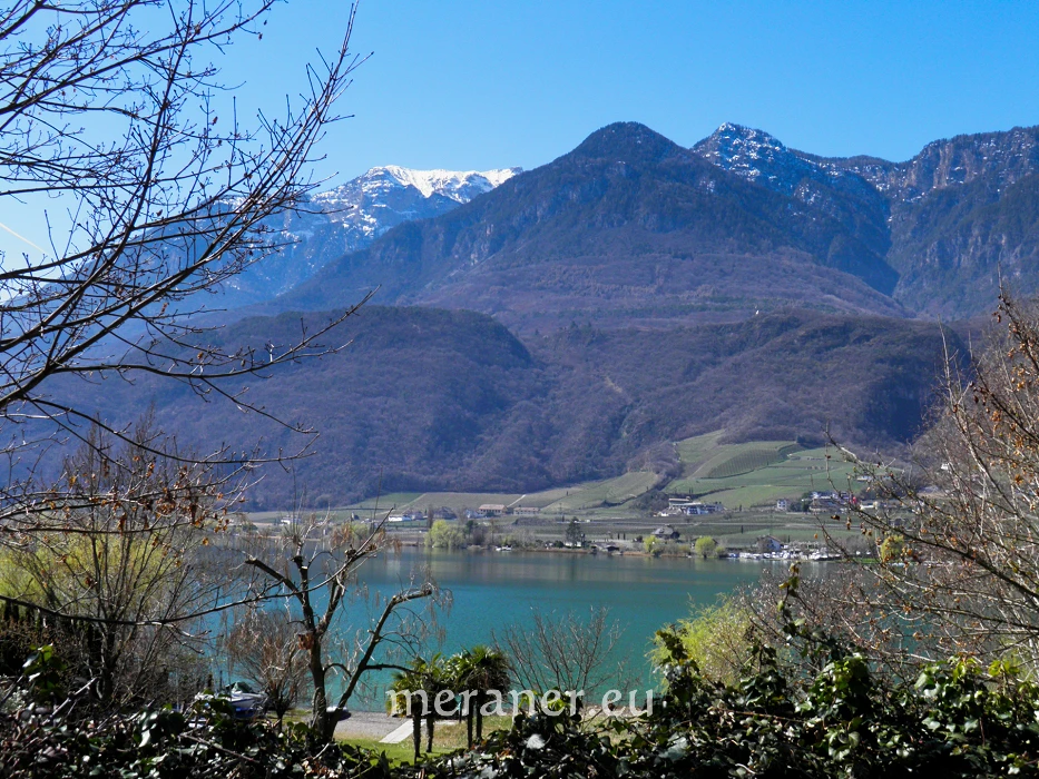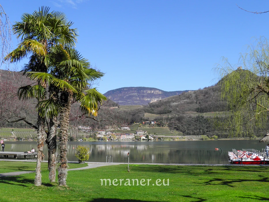 Anfahrt: Ins Überetsch, vorbei an Eppan und Kaltern und ca. 3 km nach Kaltern links hinunter zu den Gastbetrieben und den großen Parkplätzen (kostenpflichtig) an der Nordwestecke des Sees. Mit dem Bus von Bozen nach Kaltern und mit dem Citybus zum See.