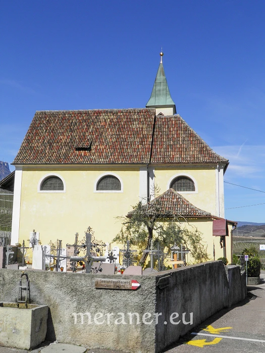 Wegverlauf: Am Lido (216 m) wenden wir uns nach links und folgen dem Hinweis „Seerundwanderweg“ und der Markierung Nr. 3, wandern zuerst zwischen Häusern und dann auf Fußwegen und Hauszufahrten nord- und ostwärts bis Klughammer am Ostufer (mehrere Gaststätten). Wir folgen der Straße ein Stück südwärts und wandern auf dem links abzweigenden Fußweg in leichtem Auf und Ab durch Gebüsch bis zu den Schautafeln an der Straße. Wir überqueren diese und wandern auf Holzstegen mitten durch Schilf und Gebüsch und teilweise auch auf der für den Verkehr gesperrten Asphaltstraße (an deren Ende Parkplätze) um den südlichen Bereich des Sees herum. Auf breiten, ungeteerten Flurwegen durch Obstwiesen und Weingärten und nach Überquerung der Weinstraße (Kaltern-Tramin) erreichen wir das Kirchlein und den Weiler St. Josef. Auf geteerter Häuserzufahrt gelangen wir zurück zum Ausgangspunkt.