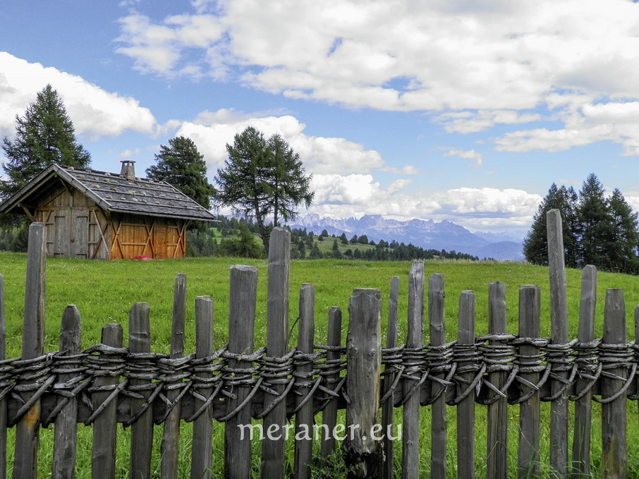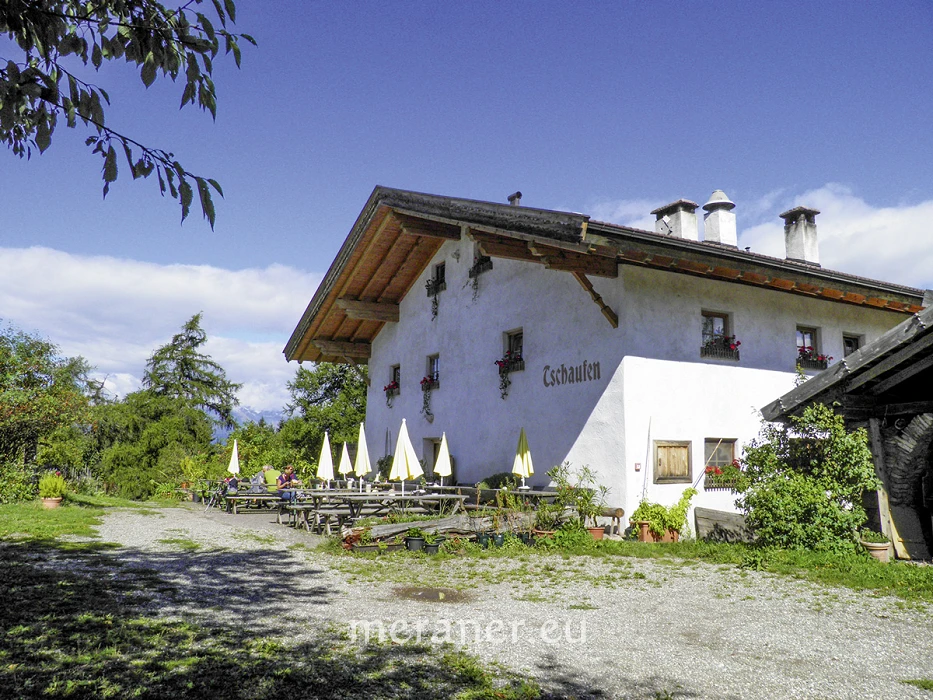 Besonderheiten: Das sagenumwobene „Tschaufenhaus“ diente im Mittelalter den Herren von Maultasch als Schwaig- und Jagdhof. Das Berggasthaus ist heute wegen seiner guten Küche bekannt. Die Aussicht ist hier einmalig, im Süden kann man sogar den Kalterer See erblicken. Der Weiler Vordernobls, der auch nur Nobls genannt wird, besitzt als Kleinod das Kirchlein St. Valentin, das sich mit seiner romanischen Rundapsis besonders harmonisch in die Landschaft einfügt. Hier, vom Südrand des Tschögglberges, bietet sich, wie auch an vielen anderen Stellen unseres Weges, eine freie Aussicht hin zu Rosengarten und Latemar und über das Etschtal. Ein paar stattliche Erdpyramiden in der sogenannten Wieserlahn, einem ausgedehnten Erosionsbecken unterhalb des Wieserhofs, stellen eine naturkundliche Sehenswürdigkeit dar.