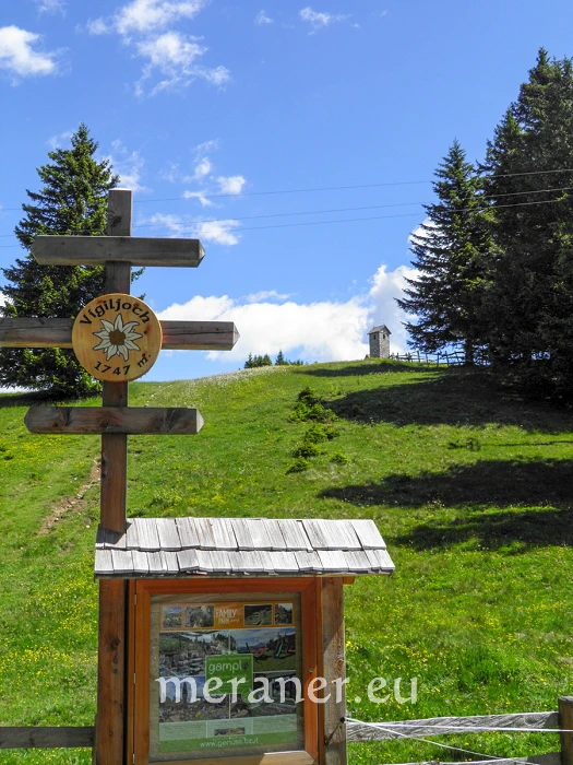 Üblicherweise wird der gesamte Bergrücken als Vigiljoch bezeichnet. Das eigentliche Joch (1.747 m) ist relativ unspektakulär; ohne das Hinweisschild würde man nicht erkennen, dass man sich auf einem Joch befindet.