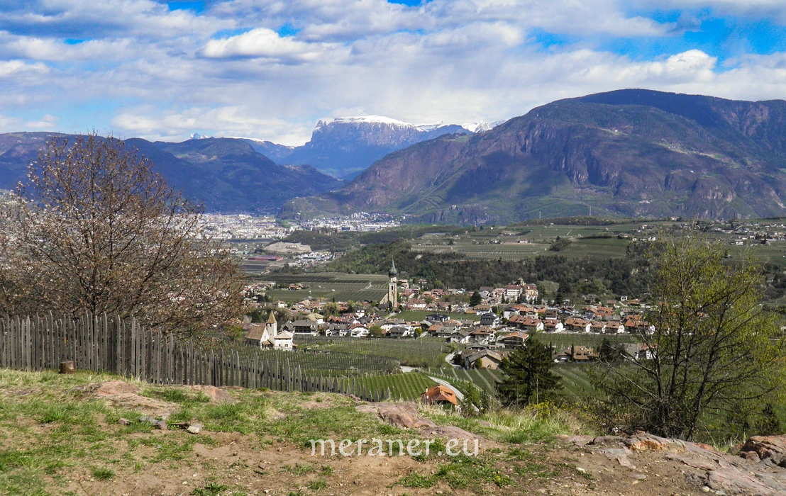 Die Wanderung führt uns durch ausgedehnte Wein- und Obstanlagen und vorbei an Ansitzen und Schlössern. Der Kreuzstein ist ein baumfreier Hügel mit schönem Ausblick auf St. Pauls, Girlan und den Bozner Talkessel mit dem Schlern im Hintergrund.
