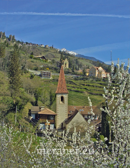 Mit dem Bus oder Auto nach Algund (355 m); im Dorfzentrum Parkgarage