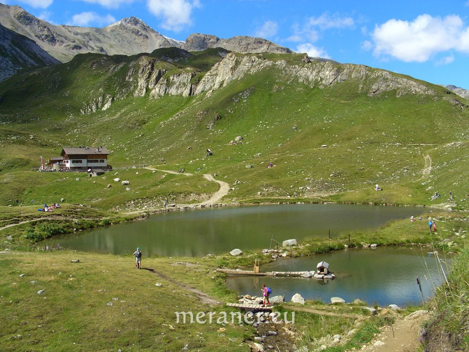 Vom Wanderweg hoch über dem Schliniger Tal genießen wir einen einmaligen Blick auf Ortler und Königspitze. Die Sesvennahütte wurde 1981 vom AVS unweit der alten Pforzheimer Hütte erbaut und liegt neben einem kleinen See in einer Mulde. Für Kinder gibt es einen Spielplatz. Zwergziegen, Enten und ein Esel gehören zur Tierfamilie der Hütte. Auf dem Rückweg von der Schliniger Alm nach Schlinig fallen die weiten, satten, grünen Wiesen ins Auge, auf denen im Winter dem Langlauf gefrönt wird. Im Anschluss an die Wanderung bietet sich auf der Heimfahrt ein kurzer Halt und der Besuch des Klosters Marienberg (höchstgelegene Benediktinerabtei Europas) an, auch wenn das 2007 errichtete Museum (geöffnet Mo-Sa 10-17 Uhr) nicht geöffnet ist.