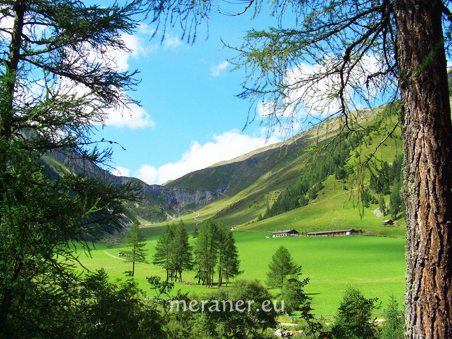 Von der Plantapatsch-Hütte wandern wir auf dem leicht auf- und absteigenden Bergweg Nr.8a die Almhänge querend bis zur Sesvennahütte (2258 m; ca. 2 Stunden). Von der Hütte steigen wir auf dem breiten Weg Nr.1, vorbei am Wasserfall an der Schwarzen Wand zur Schliniger Alm (1868 m) ab und wandern dann nahezu eben links oder rechts des Baches hinaus nach Schlinig (1730 m; ab Sesvennahütte ca. 1,5 Stunden). In der Zeit zwischen 16.00 und 18.00 Uhr verkehrt vom Parkplatz in Schlinig nach Prämajur nach Bedarf ein Kleinbus, der uns zum Ausgangspunkt zurückbringt.