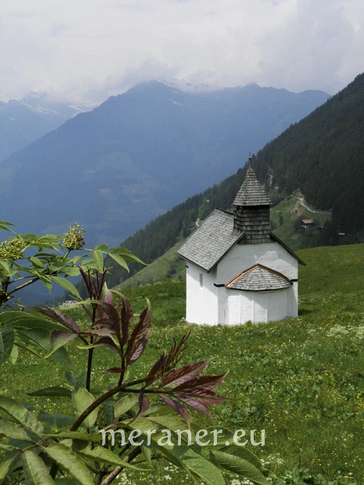 Besonderheiten: An der Bergstation der Taser Seilbahn genießen wir eine herrliche Aussicht auf die gegenüberliegenden Berge der Texelgruppe, in den Meraner Talkessel und weit hinauf in den Vinschgau. Am Beginn unseres Wanderweges steht ein schmuckes kleines Kirchlein, das zum Taser gehört, in dem im Sommer an den Sonntagen die hl. Messe gefeiert wird. Vor dem Erreichen der Streitweider Alm erblicken wir jenseits der tiefen Masulschlucht den Bergweiler Videgg mit teils uralten Höfen und einer kleinen Marienkirche, die inmitten einer Wiese steht. In Verdins hat Architekt Willy Gutweniger in den 1970er-Jahren einen sehenswerten Neubau zur alten Kirche geschaffen, in dem man einen Altar mit einer Darstellung der Abendmahlfeier und herrliche Glasfenster bewundern kann.
