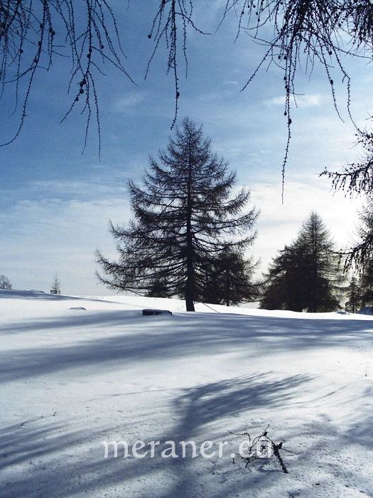 Besonderheiten: Das „Tschaufenhaus“ diente im Mittelalter den Herren von Maultasch als Schwaig- und Jagdhof. In dieser Zeit wurden die nahegelegenen Tschaufer Weiher als Fischweiher künstlich angelegt. Das Berggasthaus ist heute wegen seiner guten Küche bekannt. Die Aussicht ist hier einmalig. Im Süden kann man sogar den Kalterer See erblicken. Mächtige Lärchen verleihen den winterlichen, weiten Wiesen am Tschögglberg eine besondere Stimmung.