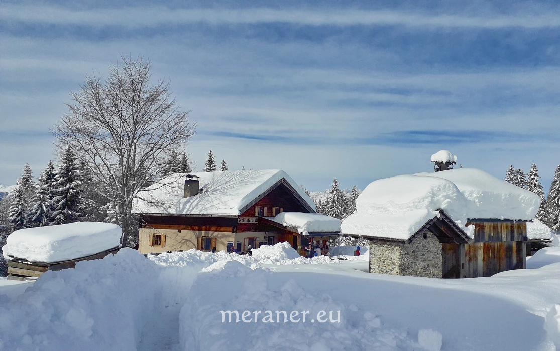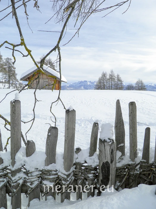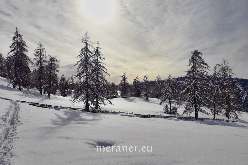 Besonderheiten: Zwischen Bozen und Meran liegt der breite Bergrücken des Tschögglbergs, der zu den Sarntaler Alpen gehört. Im Südosten des Tschögglbergs liegt der Salten; mächtige Lärchen verleihen hier den winterlichen, weiten Wiesen eine besondere Stimmung.
