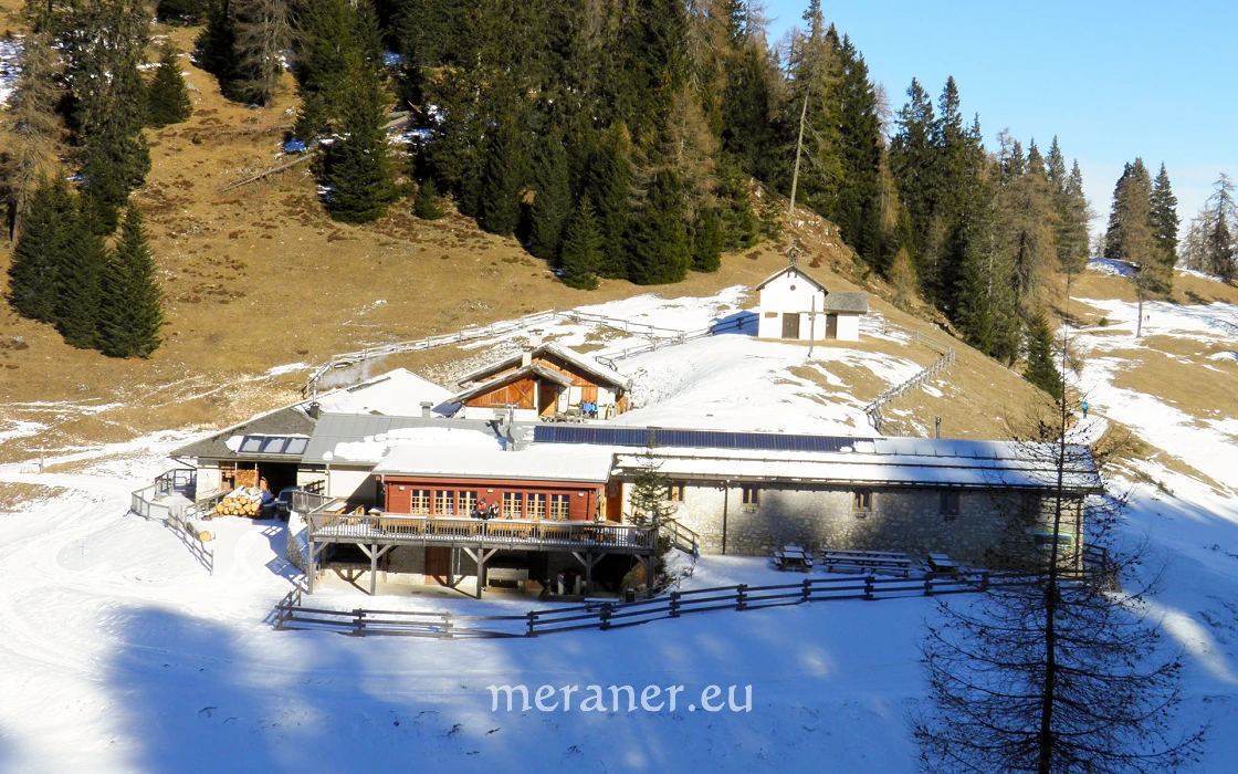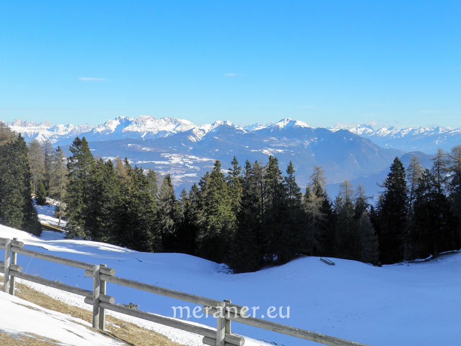 Von der Roènalm kann man bei guten Schneeverhältnissen oder mit Schneeschuhen in einer Stunde zum Roèn (2.166 m, höchster Berg des Mendelkammes) aufsteigen.