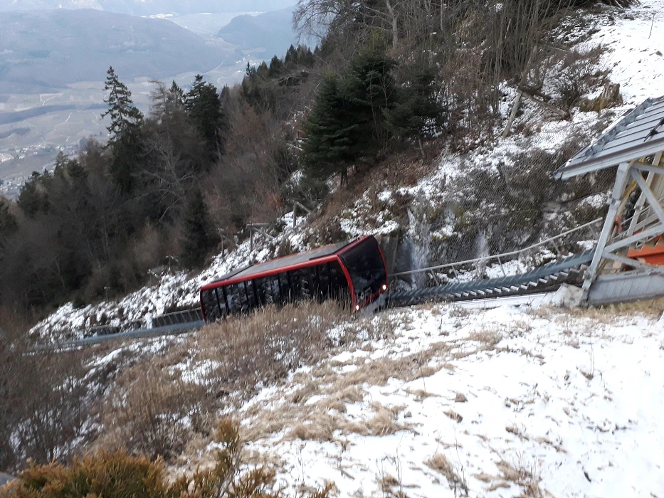 Besonderheiten: Die Mendelbahn war bei ihrer Eröffnung im Jahre 1903 die erste elektrisch betriebene Bahn Tirols und die steilste und längste durchgehende Standseilbahn Europas. In nur 12 Minuten bewältigt sie einen Höhenunterschied von 850 m und eine Strecke von 4,5 km, die maximale Steigung beträgt 64 %, die durchschnittliche Steigung