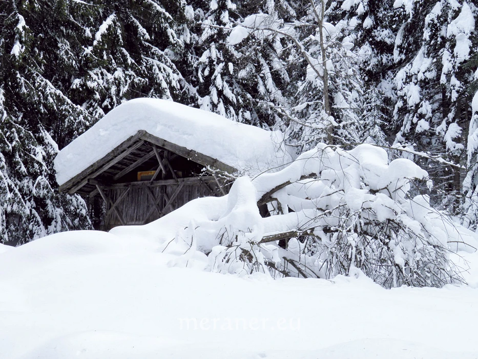 Die Wanderung führt uns über weite Wiesen und durch tief verschneite Wälder. Von beiden Almgasthöfen genießen wir eine herrliche Aussicht, vor allem auch weit hinein in die Bergwelt der Dolomiten.