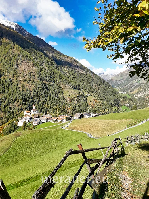 Besonderheiten: Das kleine Bergdorf Katharinaberg befindet sich idyllisch gelegen auf einem hohen Felsen. Einst stand an dem Platz, auf dem sich heute die Pfarrkirche befindet, die Schnalsburg, welche dem Tal den Namen gab.