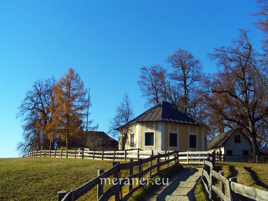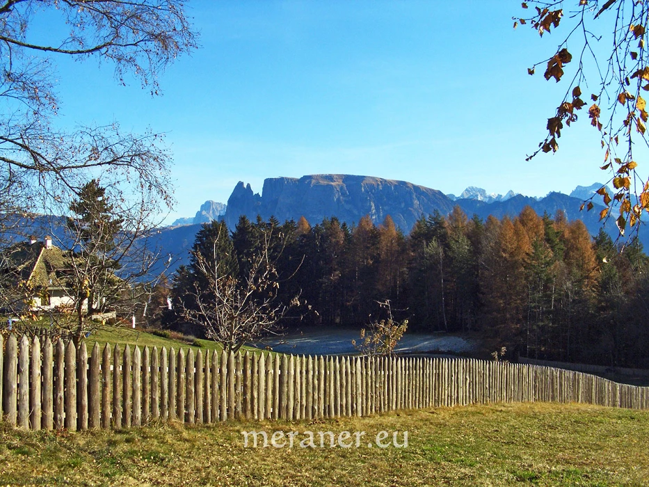 Die Kirche von Maria Himmelfahrt steht in stimmungsvoller Lage unter hohen Linden, und auf dem Friedhof unterhalb der Kirche sind Arkadenfresken der Brüder Rudolf und Albert Stolz zu betrachten. Die Aussicht in die Dolomiten und besonders auf den Schlern ist überwältigend und lässt uns immer wieder stehen bleiben, um das Schauen besser genießen zu können. Der Spaziergang ist sehr gemütlich und trotzdem kehrt man mit bleibenden Eindrücken nach Hause zurück.