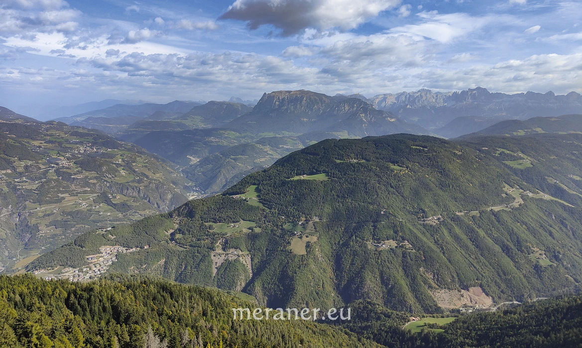 Wegverlauf: Von der Bergstation oder den Parkmöglichkeiten wandern wir hinauf zur Kirche und zu den Gasthöfen Kohlern (Einkehrmöglichkeit bis 05.11., Montag Ruhetag) und Klaushof (Einkehrmöglichkeit bis Ende Oktober) und kurz danach links auf dem Weg Nr. 5 (Hinweis: Titschenwarte/Totes Moos) – alle Abzweigungen unbeachtend lassend – teils auf dem Forstweg, teils auf dem Fußweg durch die Waldhänge mäßig bis mittelsteil hinauf bis zum Wegweiser „Weihbrunnstoan“. Links abzweigend erreichen wir die Gletschermühle und gelangen auf kleinem Steig wieder hinauf zum Weg Nr. 5 und bald zur Titschenwarte (1.550 m, ab Kohlern gut 1 Stunde) mit einer hölzernen Aussichtswarte und mehreren Sitzgelegenheiten. Nun wandern wir auf dem Weg Nr. 5 kurz bergauf zu einer Wegteilung und links (weiterhin Nr. 5) in schöner, nahezu ebener Querung der Hänge bis zu einer Kreuzung am Südhang des Titschen (von da event. Abstecher zum Gipfel, 1.616 m; 10 Minuten, mäßig lohnend) und weiter zur nächsten Weggabelung (hier links kurzer Abstieg auf Weg Nr. 1 und dann rechts – Hinweis fehlt – auf Steig 1B zur Rotwand, 1.534 m; ca. 10 Minuten, lohnend). Von der genannten Weggabelung folgen wir dem Schild „Schneiderwiesen“ und der Markierung Nr. 1 und gelangen zu einem Wegkreuz auf einem Felsblock mit Sitzbank. Auf dem Forstweg oder auf dem alten, sehr steinigen und teils steilen Hohlweg erreichen wir die weiten Schneiderwiesen mit dem gleichnamigen Gasthof (1.372 m, Einkehrmöglichkeit bis 05.11., Mittwoch Ruhetag, danach nur an den Wochenenden; ab Titschenwarte knapp 1½ Stunden). Hinter dem Gasthof folgen wir weiterhin dem Weg Nr. 1 über Wiesen und durch Wald, erreichen einen querenden Fahrweg und gelangen rechts zurück nach Kohlern (ab Schneiderwiesen knapp 1 Stunde).