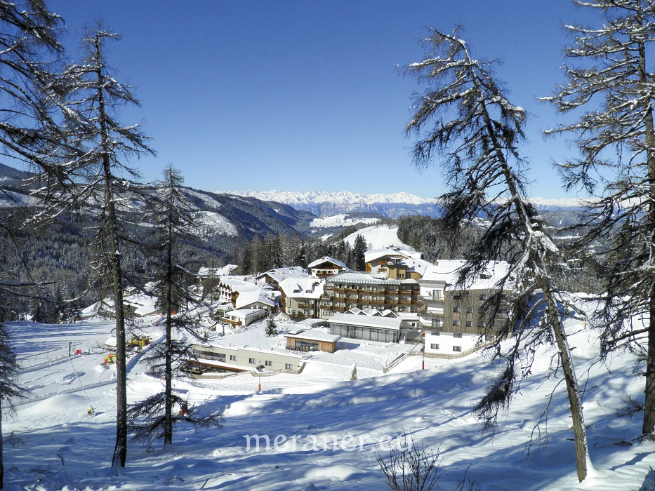 Wegverlauf: Vom Kreisverkehr folgen wir kurz der Straße Richtung Hotel Royal (auch hier links der Straße Parkmöglichkeiten), gehen am Hotel links vorbei und erreichen die Rodelbahn. Wir überqueren diese und wandern rechts davon auf einem gebahnten und von einem Zaun begrenzten Weg in stets gleichmäßiger Steigung hinauf bis zu einer Unterführung für Fußgänger und Rodler (Abstecher zur nahen Epircher-Laner-Alm (1.826 m, Einkehrmöglichkeit; ab Parkplatz knapp 1 Stunde).