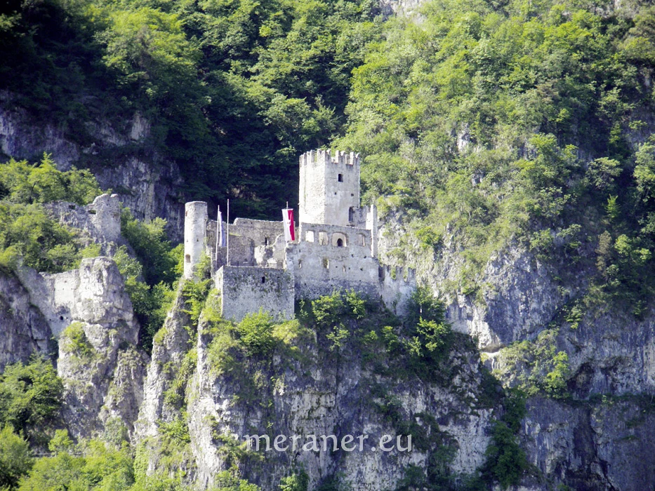 Wegverlauf: Von Salurn (224 m) gehen wir durch die Trientstraße südwärts bis fast zur Einmündung der Umfahrungsstraße, wo links entsprechende Wegweiser den Beginn des Weges zur Burg anzeigen. Auf dem mit Holzgeländern versehenen Wanderweg erreichen wir, durchwegs durch Schatten spendendes Buschwerk nur leicht ansteigend, in weit ausholenden Serpentinen die Burg (ca. 350 m; ab Salurn ca. 45 Minuten; Einkehrmöglichkeit, die Burgschenke ist von Mittwoch bis Sonntag von 11 bis 18 Uhr geöffnet). Stiegenanlagen führen innerhalb der Burg einerseits hinunter zur Gastschenke im Burghof und andererseits hinauf zur eigentlichen Hochburg.