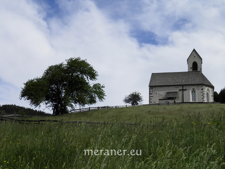 Besonderheiten: Diese Wanderung führt in das sonnige Gebiet des Villnösstales, das sich im mittleren und äußeren Teil zwischen St. Peter und Teis ausbreitet. Das besondere Juwel dieser Landschaft ist das Kirchlein St. Jakob, das von einer Wiesenschulter weit über das Land und hinein zu den Geislerspitzen schaut. Es liegt am uralten, einst wichtigen Jochweg, der von St. Peter nach Albeins führt. Die Langhausmauern stammen aus dem 12. Jahrhundert.