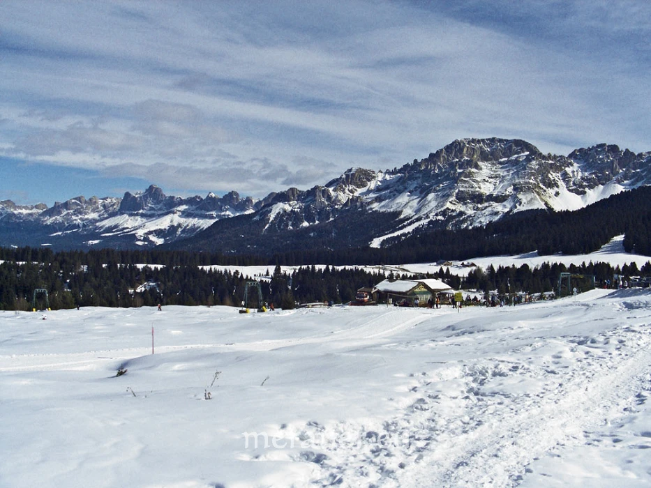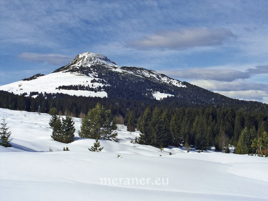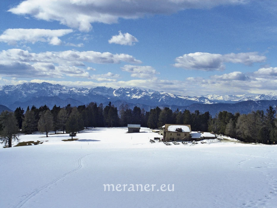 Am Lavazèjoch, bei der Auerleger Alm und am Jochgrimm herrscht reges Treiben. Auf dem Wanderweg können wir die unberührte Landschaft und die winterliche Ruhe genießen. Bei schönem Wetter bieten sich uns eine überwältigende Sicht auf die nahen Berggipfel der Dolomiten und ein herrlicher Ausblick bis zu den Ötztaler Alpen. Auf dem Weiterweg zur Gurndin Alm reicht der Blick weit in die Bergwelt der Nachbarprovinz Trentino.