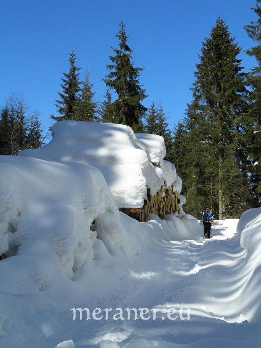 Schwierigkeit: Bei guten Schneeverhältnissen ist die Wanderung leicht und auch für Familien geeignet. Im Spätwinter kann man auf eisige Stellen treffen. Wanderstöcke und/oder Schuhspikes sind ratsam.