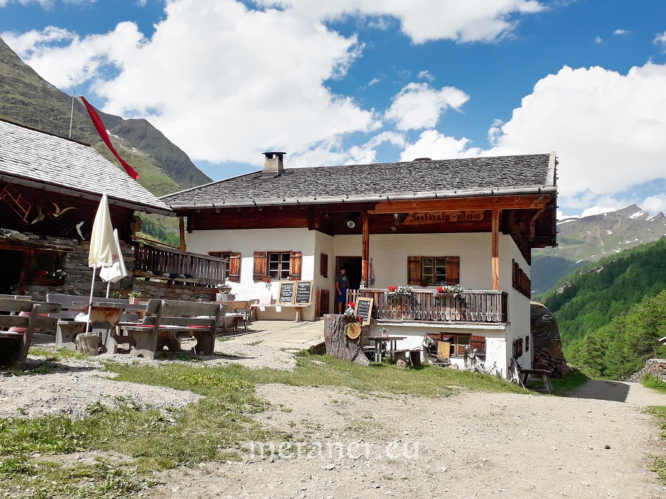 Anfahrt: Von St. Leonhard in Passeier nach Moos und weiter auf der Timmelsjochstraße bis zum Gasthof „Hochfirst“, dann noch ca. 1 km weiter, bis gleich nach einer Rechtskurve links ein ungeteerter Fahrweg (Hinweis: „Parkplatz Seeberalm“) abzweigt, auf diesem mit erhöhter Vorsicht bis zum Parkplatz (1.900 m).